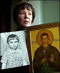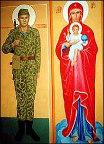 "Aleksandr Makeyev, a paratroop officer who heads a foundatioion to assist soldiers, said he had seen soldiers kneeling in prayer before an image of Private Rodionov. 'The kids in Chechnya, they feel they've been abandoned by the state and abandoned by their commanders,' he told the newspaper Moskovsky Komsomolets. 'They don't know who to appeal to for help, but they understand that Zhenya is one of them,' he said, using Private Rodionov's nickname. 'You can say he is the first soldier-saint.'
